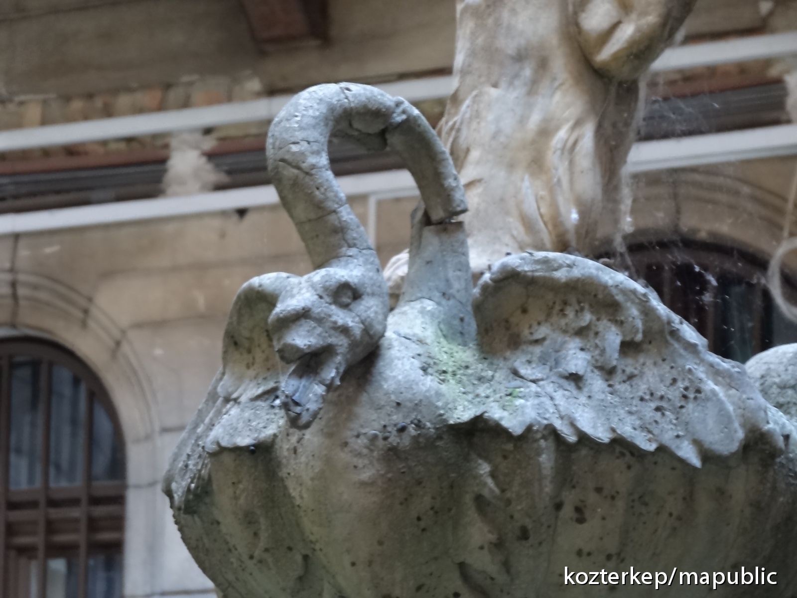 A kerület egyik házában, ami maga is az enyészet sok-sok jelét mutatja, az udvar közepén áll a szökőkút, rajta a régóta felismerhetetlen Vénusz szobor, körülötte a szárnyukat széttáró hattyúk és egy szörny-pofa.