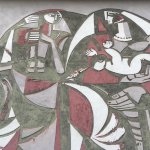 A Tiszaeszláron látható festményen négy festékréteget vitt fel eredetileg. Az elkészített makró felvételen jól látható a mű szerkezete. A méregzöld, bordó, szürke és fehér felületek visszakaparásával elért eredmény azt hiszem önmagáért beszél...