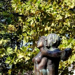 "Repülő szerelmesek", vagy a szerelem maga (?) Egymásrautaltság, feltétlen bizalom, egység és szárnyalás. A két fiatal kitárt karral, éppen a földet (a realitást) elhagyva lendül a magasság felé. Én azt hiszem, párját ritkító statikai bravúr.