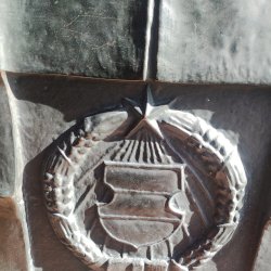 Sajnos nem tudom, melyik címer volt a település szocialista időkben használt címere, mert a mait gondolom arrafelé is csak a rendszerváltozást követően kezdték alkalmazni. És az nem szerepel a kapun.