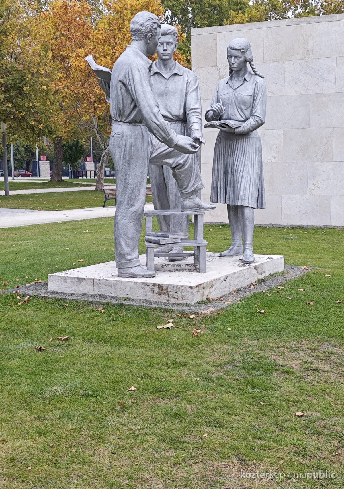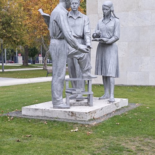 A dromosz 16 szobra közül az egyetlen, amely a munkásság és a parasztság helyett az értelmiséget jeleníti meg, feltehetőleg szándékosan nem feltűnően.