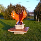 Ez a színpompás, színes fémlemez foltokkal díszített fa pillangó egy játszótérre került a gyerekek nagy örömére. Az alatta kialakított padon le is ülhetnek kicsik és nagyok.