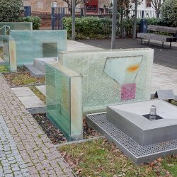 A pihenőparkban egymás mögött három csobogó kapott helyet, melléjük pedig Bojti András üvegművész, üvegszobrász "Hommage à Janáky" című üvegplasztika-sorozata került.