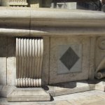 Ez az egyszerűség hozzá is járul ahhoz, hogy az obeliszk alig észrevehető. A katedrális tömege mindent elnyom a téren. A kútoszlopon latin fölirat utal a kút funkciójára.
