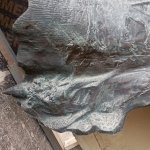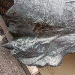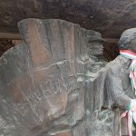 Maga a szobor, ami kb. fél életnagyságú, egy nagyjából másfél méteres andezittömbön nyugszik.
