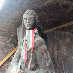 Ottjártamkor is nemzeti színű szalagok díszítették a szobrot, egy helyi, idős nénivel beszélgetve a kúria melletti parkban feltűnt, hogy milyen szeretettel beszélnek még ma is a szabadságharc hőseiről.