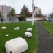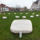 Az emlékmű kövekből összeállított rózsafüzér, amelyen Popieluszko atya utolsó prédikációján elhangzott mondataiból olvashatunk magyar és lengyel nyelven.