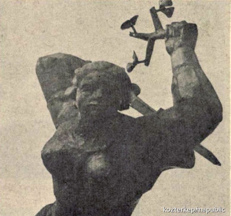 Annak a szobornak alkotásával, amelyet a 32. évforduló alkalmából Gyula városnak készített, öregbíti emberi-művészi jó hírnevét. Rézdomborítású szobra — amely a szabadság géniusza, hatalmas pallósával ellen állhatatlanul tör a zsarnokság ellen, s virágzó faággal a kezében szimbolizálja a szabadság és a béke együvé tartozását —, olyan nagyszerű alkotása a művésznek, amelyre méltán lehet büszke nemcsak a szobor alkotója, hanem Gyula város lakossága is.
