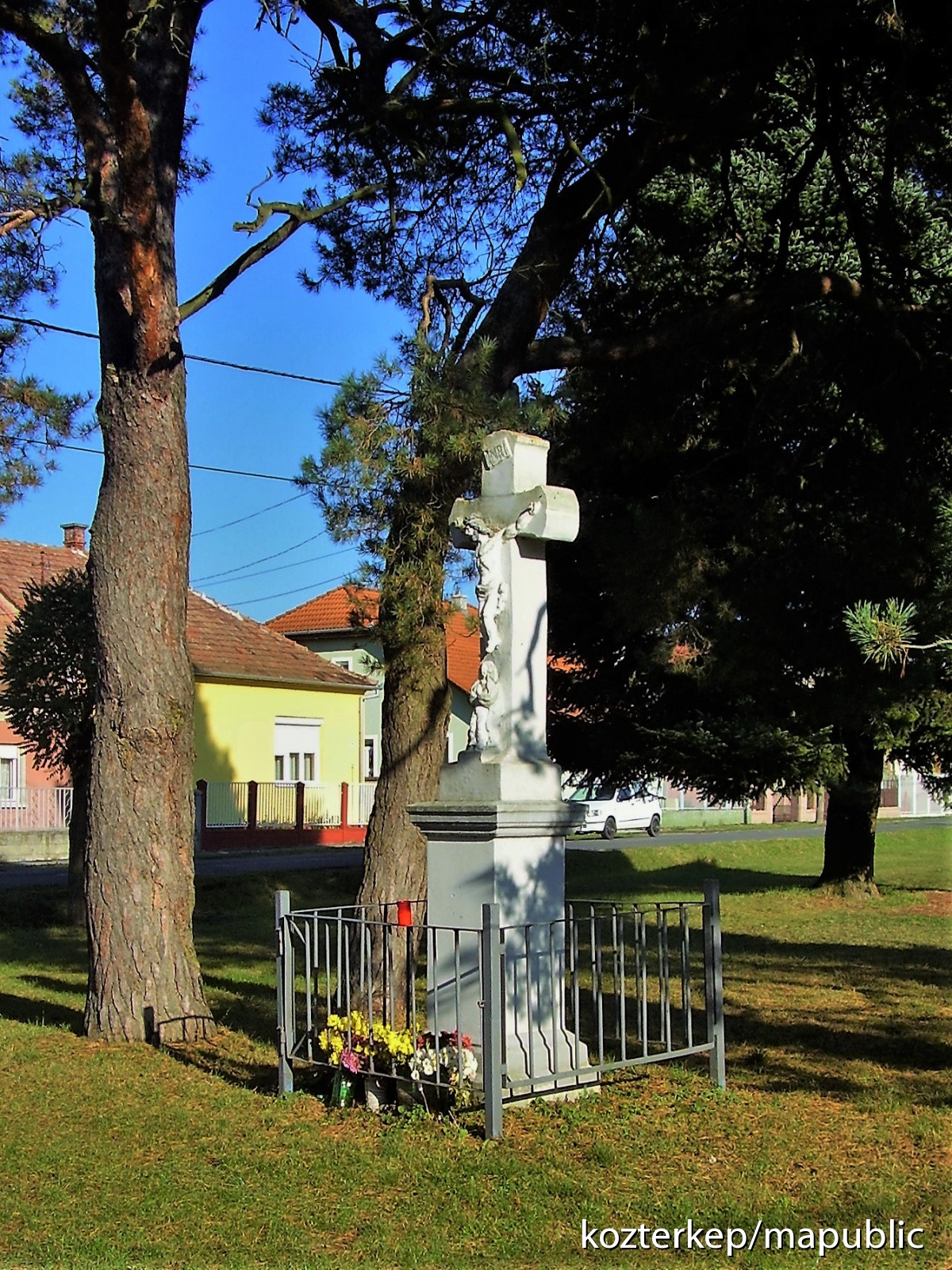 A kereszt történetéről így ír a holmi.nagykar.hu : "A Sétakert Csengery úti bejáratától (a hajdani „Barátok kertje”) a kőkereszt a Kórházkápolna avatásakor (1932) lett áttelepítve a Táncsics Mihály térre. Sajnos a „helyreállítások” során feliratait eltüntették."