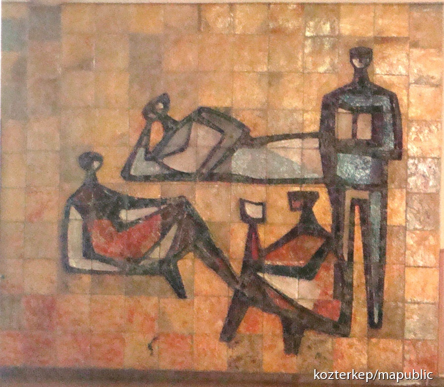 A mázas samott falikép, kb. 12 négyzetméter nagyságú.