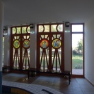 A Bráda Tibor festőművész által tervezett, és gondolom kivitelezett ablakok színesek, vidámak, a gyerekeknek figyelemfelkeltőek, ha ott ugrabugrálnak a gyermek-medencében.