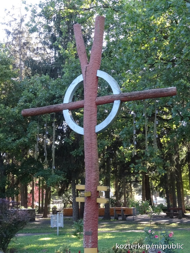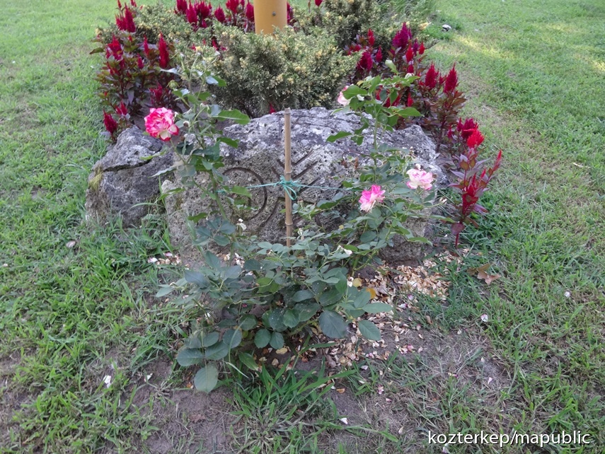 A középen álló jelfa körüli köveken, még írásos jeleket is vésett a művész. Sajnos én nem tudom megfejteni a jelentésüket.