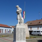 A 170 cm magas posztamensén álló katona szomorúan néz maga elé, puskájára támaszkodva. Az áldozatok neve szinte az egész posztamenst elfedi. Felirat: