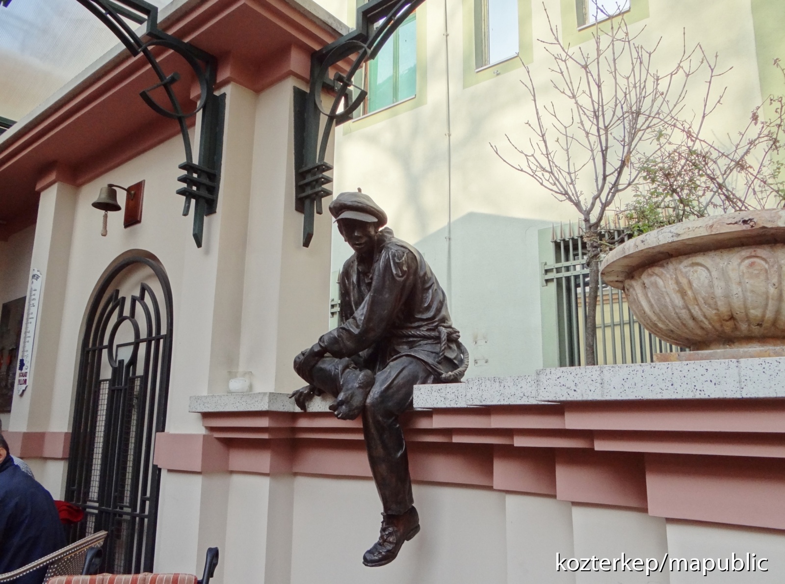 Sem a csapzottság, sem a szemtelennek tűnő, sőt flegma arckifejezés (sem a többi szobor témájának "kakofóniája") nem zavarta a helyben étkező-szórakozó vendégeket. Talán az sem, hogy a csoport gyors iramban rohant át közöttük a másik oldalon felfedezésre váró Raichle-palota felé.