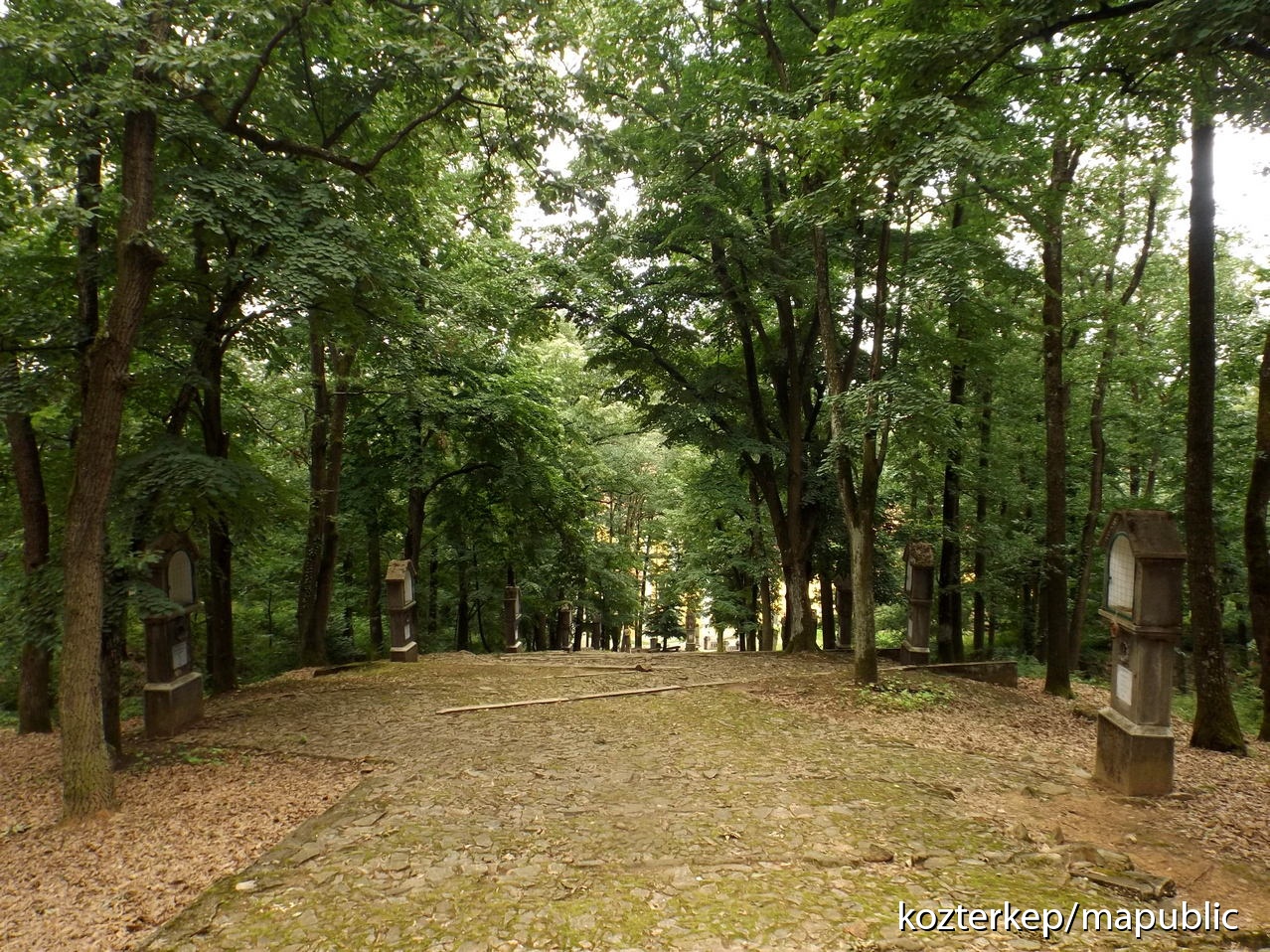 "A Keresztút egyes állomásai a stációk. Külső térben a stációk jellemzően téglából, kőből épített, faragott oszlopok, gazdagabban ráhelyezve, vagy fülkékben reliefekkel ábrázolt jelenetekkel készül."