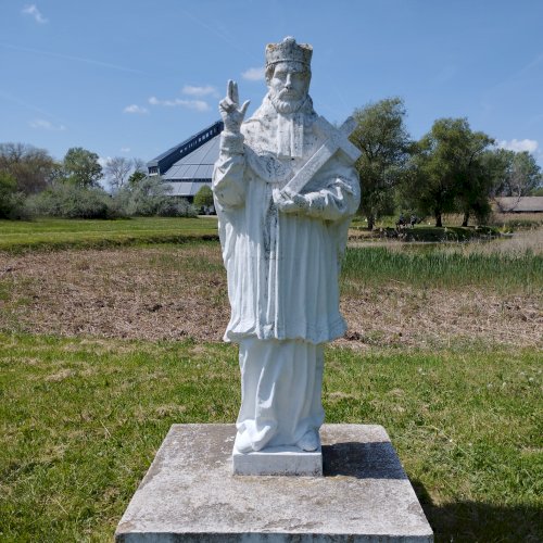 Pontosan hét éve, 2010. májusában jártam az ópusztaszeri Nemzeti Történeti Emlékparkban. Akkor még nem láttam Nepomuki Szent János szobrát. Ebből adódóan a köztes években állították fel a Rotunda melletti záportározó tó mellett.