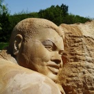 A tó medrének kotrásakor 2000 környékén egy több tonnás kőtömböt emeltek ki, "amely a mélyben millió évek óta aludta álmát..." A fesztivál szervezőinek "víziója" szerint a kő egy szobrot zárt magába, így elszállították az alkotó műhelyébe azzal, bontsa ki a rejtőzködő szobrot a kőtömbből. Kellet némi idő, amíg a szobrász az "ormótlan, idomtalan" kőtömböt körbe-körbejárva meglátta benne a kanadai jazz-zongorista figuráját. Mindez nyár elején történt, júniusra elkészült az alkotás, amely a „A billentyűk maharadzsáját” ábrázolja zongorázás közben, ahogy fényképekről, felvételekről ismerhetjük őt: hangszerén játszik, közben "kitekint" a közönségre.