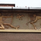 Az ún. Művészházon van a fríz. A házat 1956-ban adták át, a terrakotta dísz 1958-ra készült el.