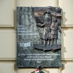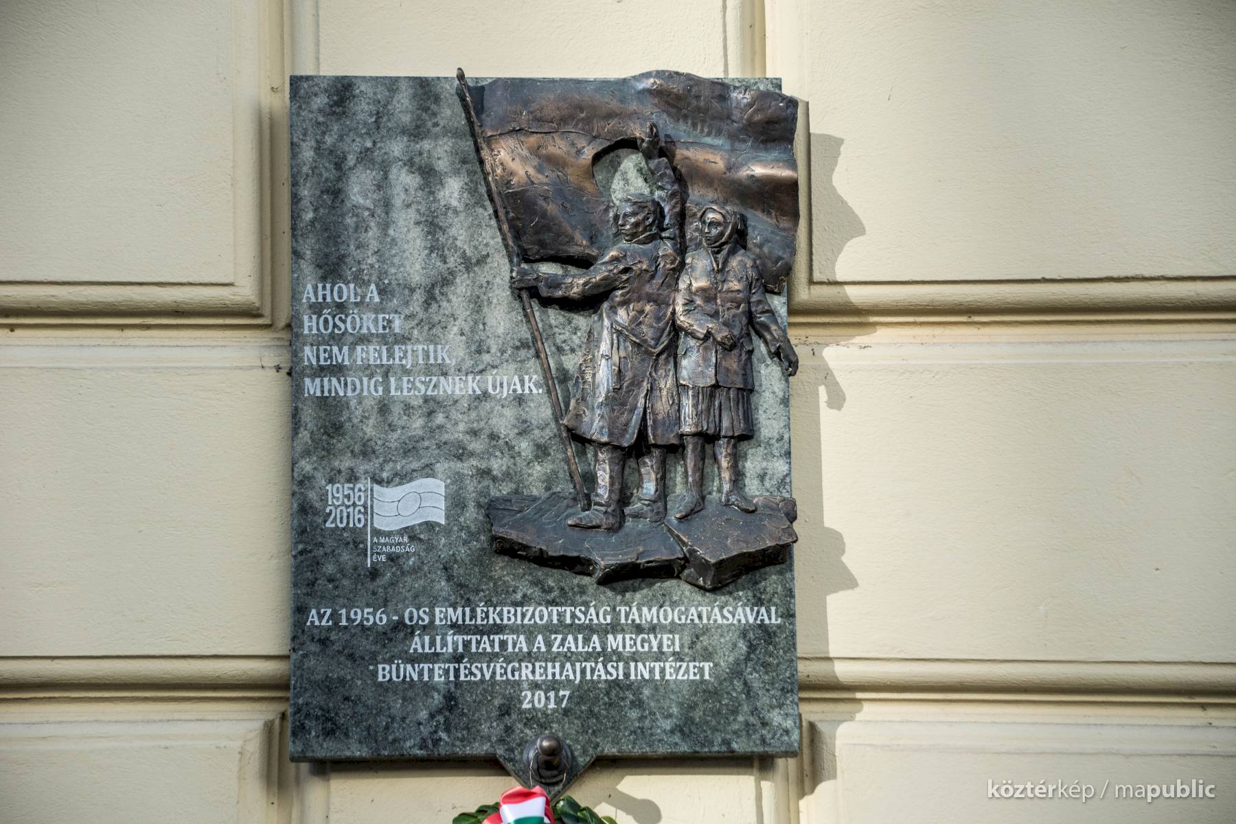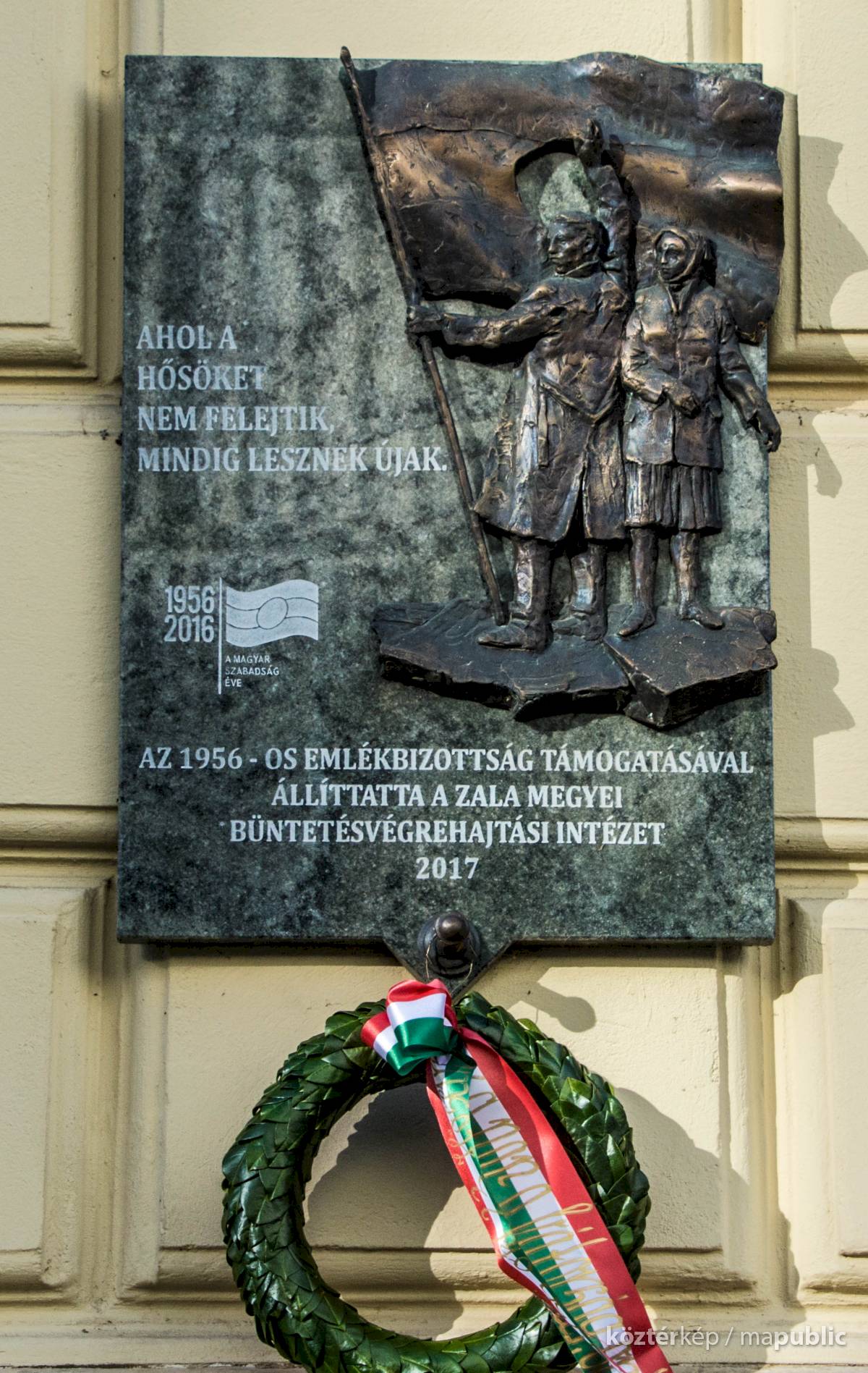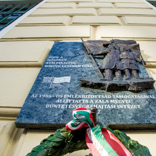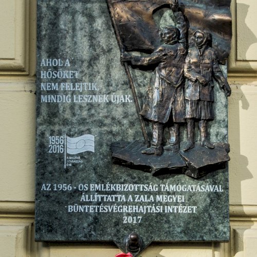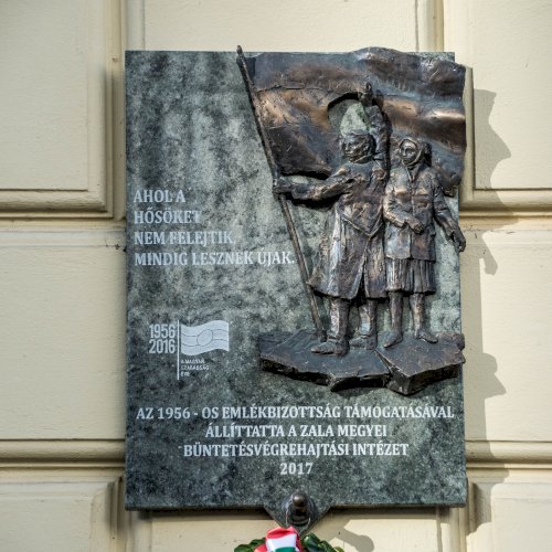 Az alján: "AZ 1956-OS EMLÉKBIZOTTSÁG TÁMOGATÁSÁVAL ÁLLÍTTATTA A ZALA MEGYEI BÜNTETÉS-VÉGREHAJTÁSI INTÉZET 2017"