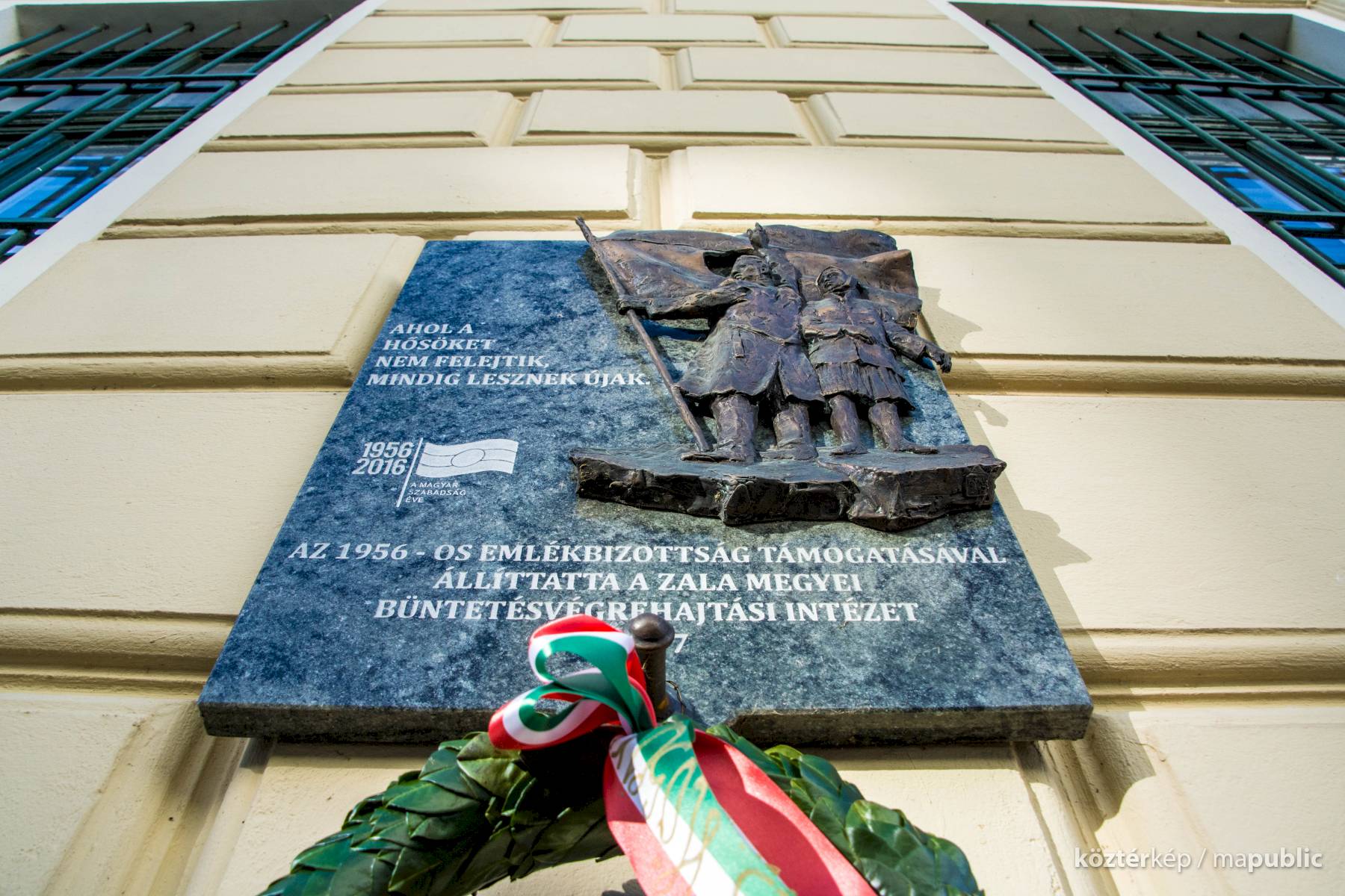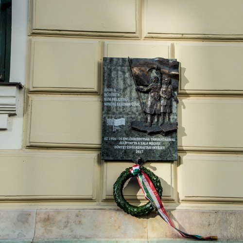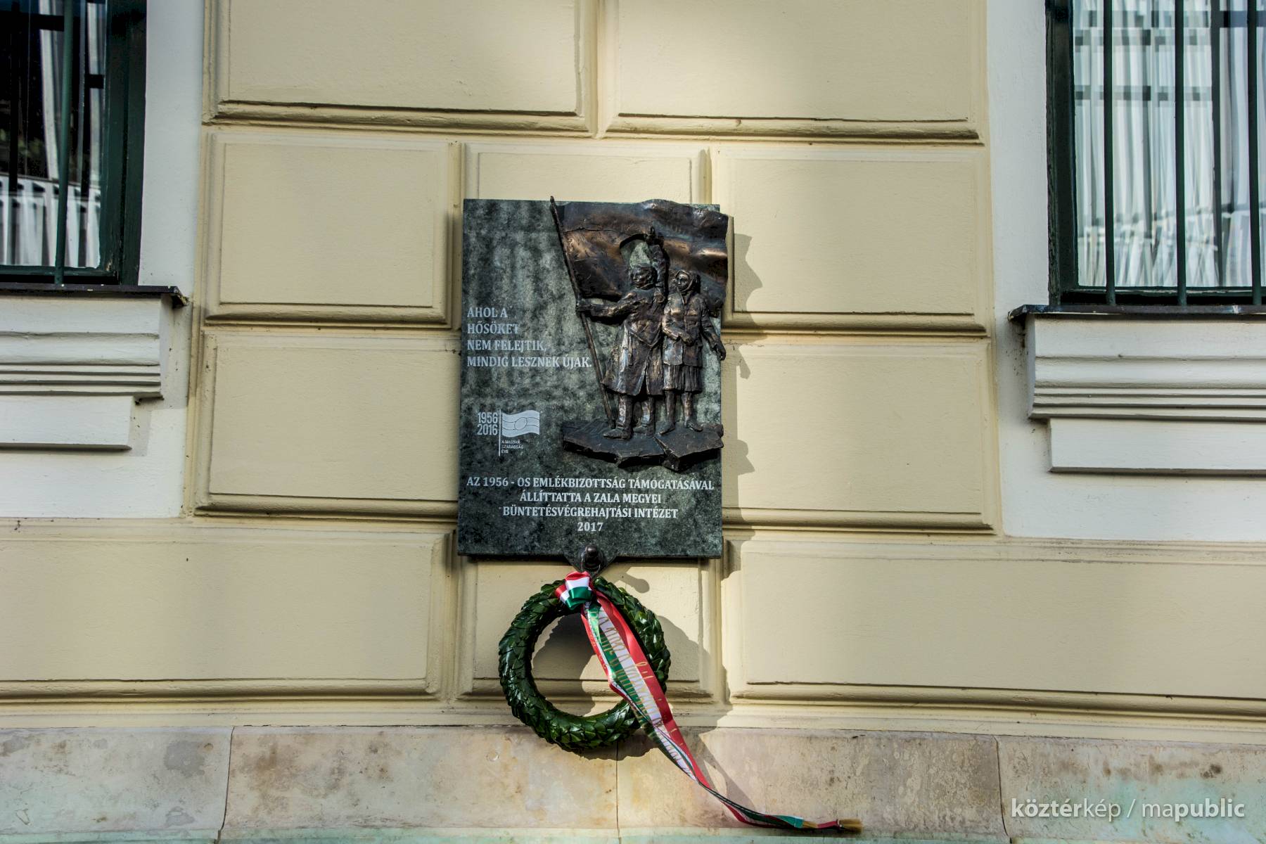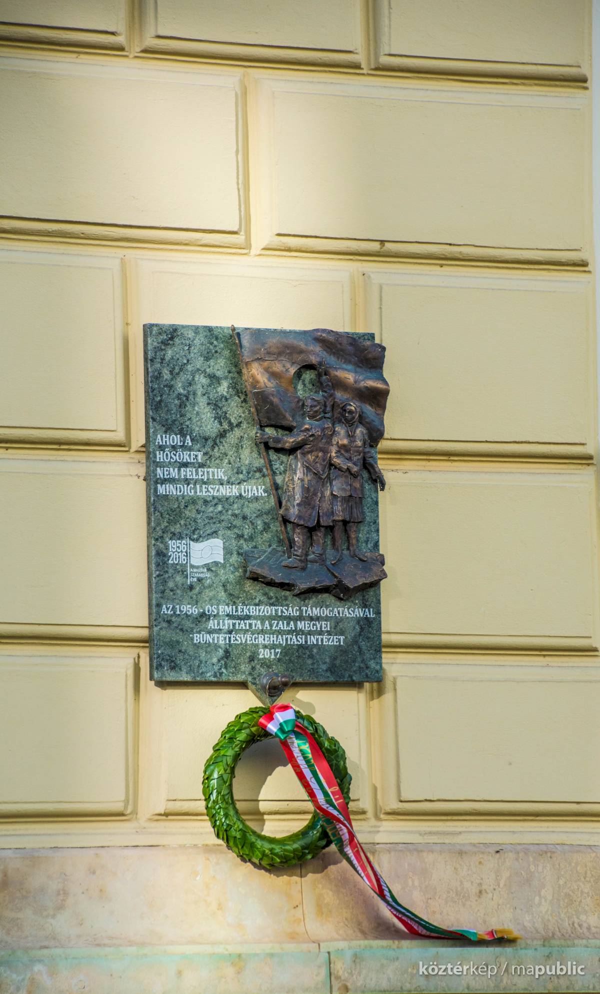 Az alján: "AZ 1956-OS EMLÉKBIZOTTSÁG TÁMOGATÁSÁVAL ÁLLÍTTATTA A ZALA MEGYEI BÜNTETÉS-VÉGREHAJTÁSI INTÉZET 2017"
