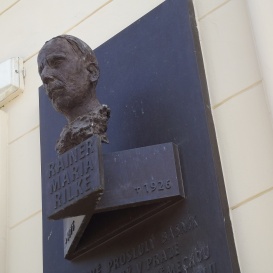 A mellszobros emléktáblával jelzett épületben volt a német nyelvű, piarista általános iskola ahova Rilke 1882-1886 között járt.