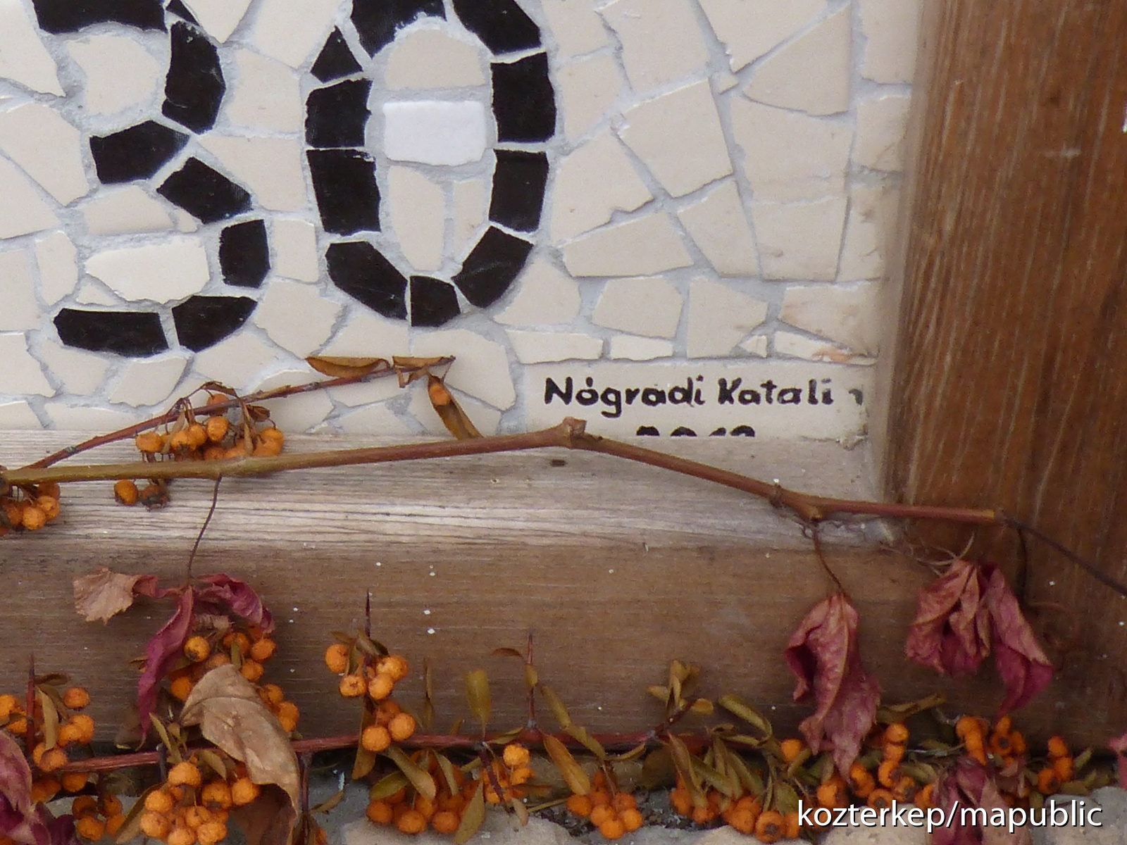 Körülbelül 2800-3000 darabból készült 112 x 88 cm törtcsempe.