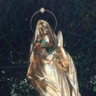 Az Aranyozott Madonna egy zöld növényzetből kialakított szoborfülkében áll, kezeit imára összetéve, talán a tengeri viharos pusztítás elkerüléséért könyörög.