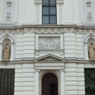 A jobb oldali félköríves szoborfülkében Szent Peregrin (Laziosi Szent Peregrin, Forli Szt. Peregrinus (Pellegrino Laziosi/Latiosi da Forli, c1265–1345)) szerzetes szobra áll. A rákban szenvedők védőszentje. Rosszindulatú daganata egy éjszakán át Jézushoz történt imádkozás után meggyógyult. 1726-ban szentté avatták.