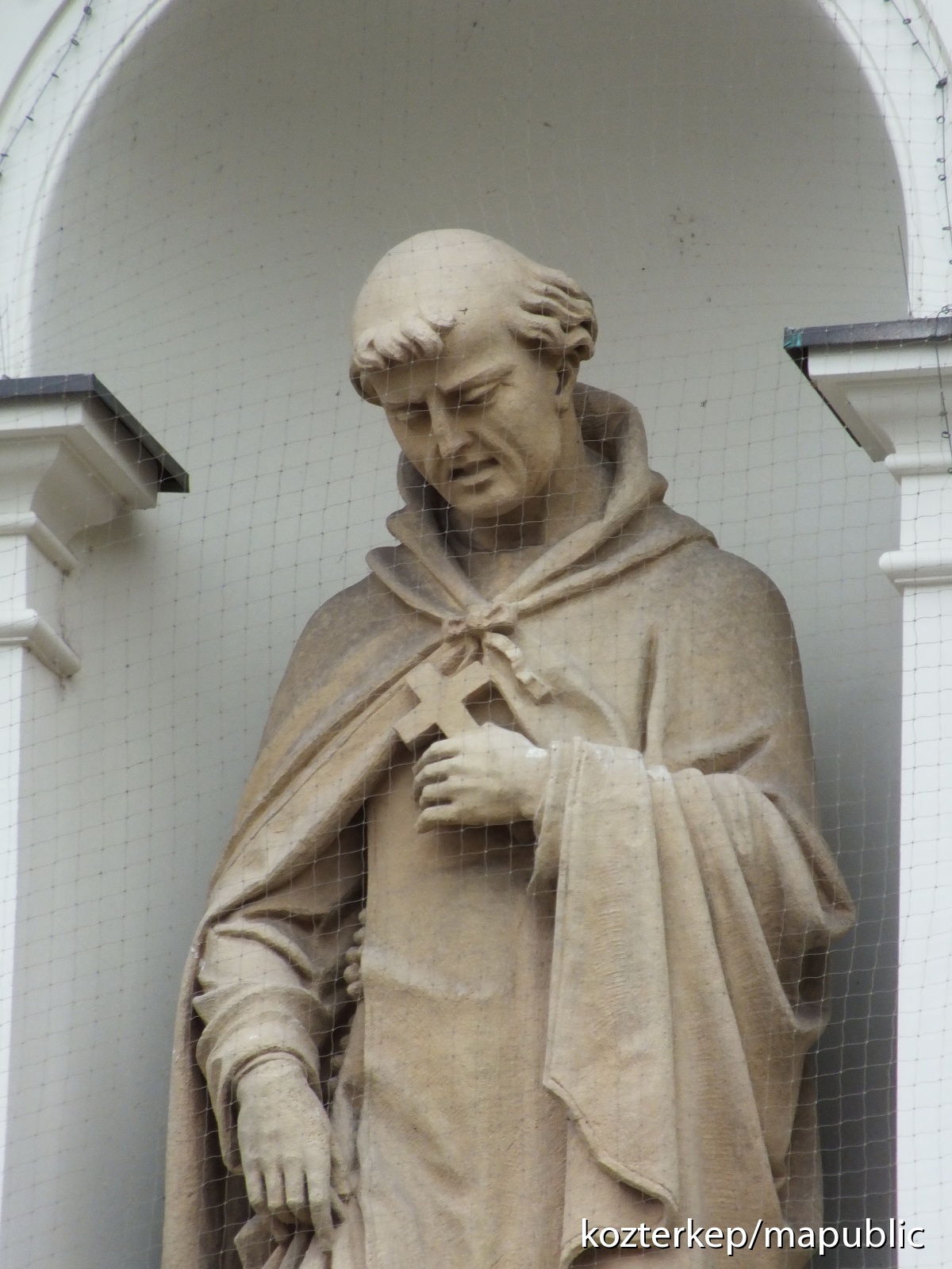 A szobron a Szervita Rend viseletében látható: „A szerviták – a Fájdalmas Szűzanya gyászára utalva – fekete kámzsát, rajta fekete skapulárét és csuklyát hordtak, bőrövvel és térd alá érő fekete köpennyel.”