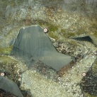 A róla szóló Pogány Gábor-cikkre találtam rá, amitől látszólag függetlenül (inkább az előző cikk végén) láttam néhány fotót, köztük egyet erről az alkotásról. Képaláírás: "Szobor, 2008. Üveg, föld, acéllemez, növény. M: 6,4x1,7x0,4 m. Velence, Thermál-fürdö " Már indultam is volna, de helyette kezdődött a havazás.