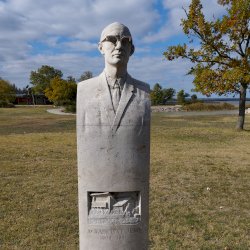Formailag az alkotás rokon a korábbiakkal, a posztamens és a mellszobor formabontó módon egy tömböt alkot, míg a tömb alsó-elülső részén egy dombormű az ábrázolt személyhez kapcsolódó jellemző képet mutat. Itt nem mást, mind a – Chernel István nevét viselő – Madárvárta épületét és környezetét mutatja a "beépített" kép, eredetiben ld. https://fejer.szgyf.gov.hu/images/Madarvarta1.JPG