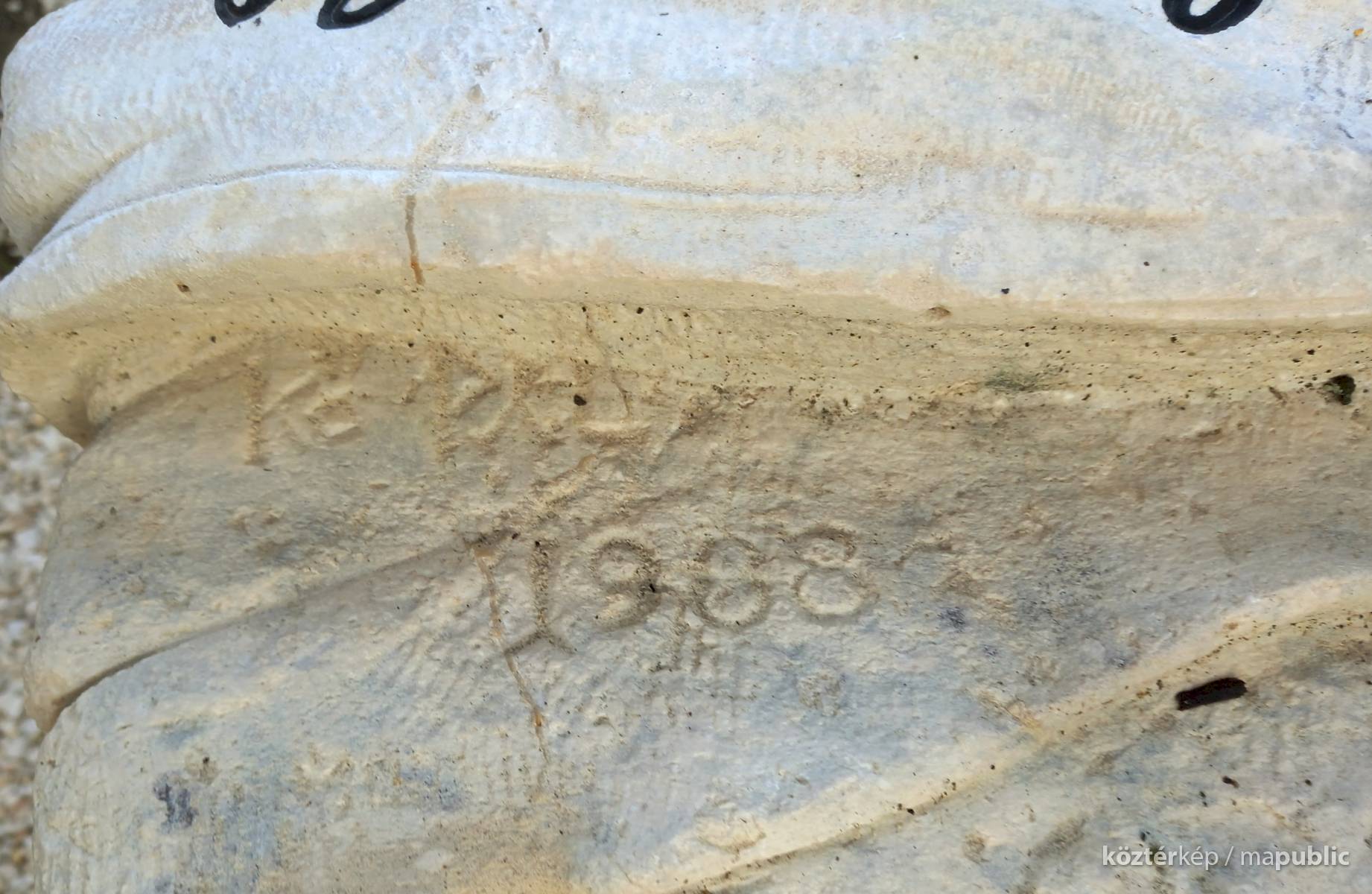 Alatta a felirat: Kovai Lőrinc. A lepel alig észrevehető redőjében az alkotói szignó: Kő Pál, és az alkotás évszáma: 1988.