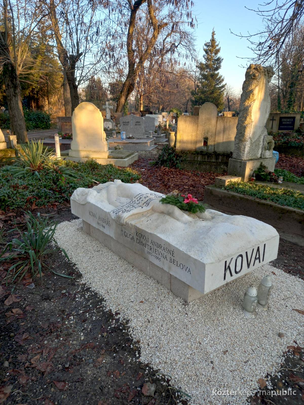 Az egyszerűnek induló esetekből lesznek néha a legszebb történetek. Egy festő síremlékének fényképezését ígértem meg egy távol élő ismerősömnek. A síremléket az új köztemetőben kellett keresni, a megtalálható adatok szerint. Mint később kiderült, ez nem bizonyult könnyű dolognak. A megadott parcellában keresgélve, egy temetői dolgozó a segítségünkre sietett, s megmutatta a keresett sírhelyet, ahol azonban egy másik névvel szereplő síremléket láthattam. A síremlék egy szobrász munkája volt, ezért fényképeket készítettem, gondoltam, majd később kutatok az elhunyt után. A biztonság kedvéért a temetői gondnokságon érdeklődtem, s akkor kiderült az igazság. A megadott sírhely területén két sír található, s az egyik, egy futónövénnyel, fahajtásokkal benőtt, fejfa nélküli kisebb dombocska, mely az a sír, amelyet eredetileg kerestem. A szemlélő nem is gondolja síremléknek. Megjegyzem védett. Mellette, a temetői út szélén, másik, a „23-1-9/10a”-val jelölt Kovai síremlék, rajta Kő Pál szobrászművész 1988-ban készült sírszobra.