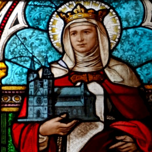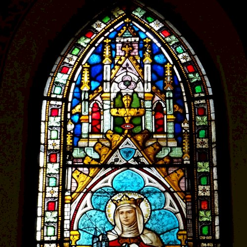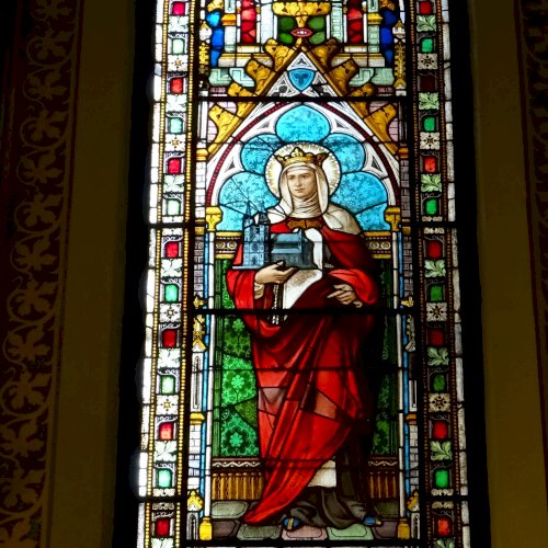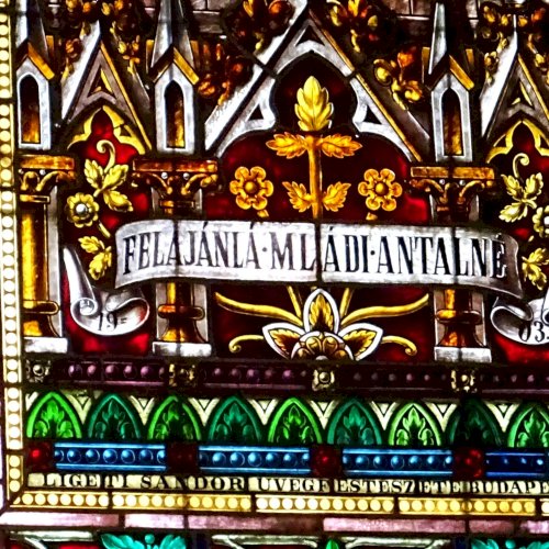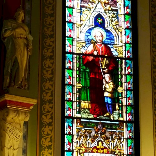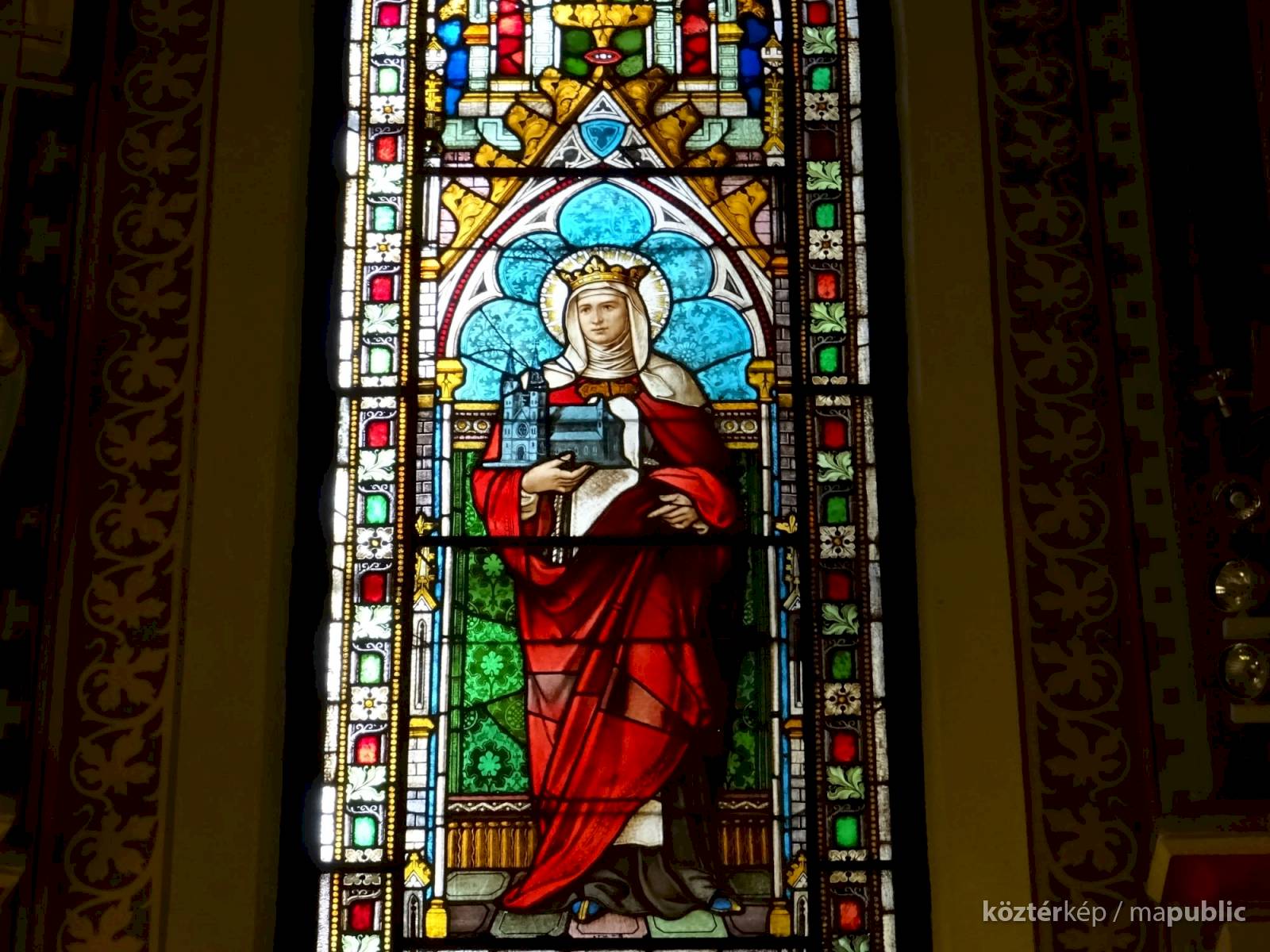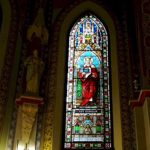 2022.09.07.Egy kedves ismerősöm hívta fel a figyelmemet, hogy a leírásban Gizella királynéról a wikipédiát felhasználva azt írtam, hogy boldoggá avatták. És ez a közvélemény is. A https://archiv.katolikus.hu/szentek/0507.html link szerint nem lett boldoggá avatva. Az üvegablakon pedig ráadásul Szent Gizella a felirat.