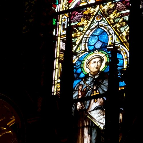 „Ferreri Szent Vince O.P. (San Vicent Ferrer, Valencia, 1350 – 1419) katalán író, Domonkos-rendi szerzetes, prédikátor.” „1455-ben III. Kallixtusz pápa avatta szentté….Az epilepsziában szenvedők, az építészek és a kőművesek védőszentje.”