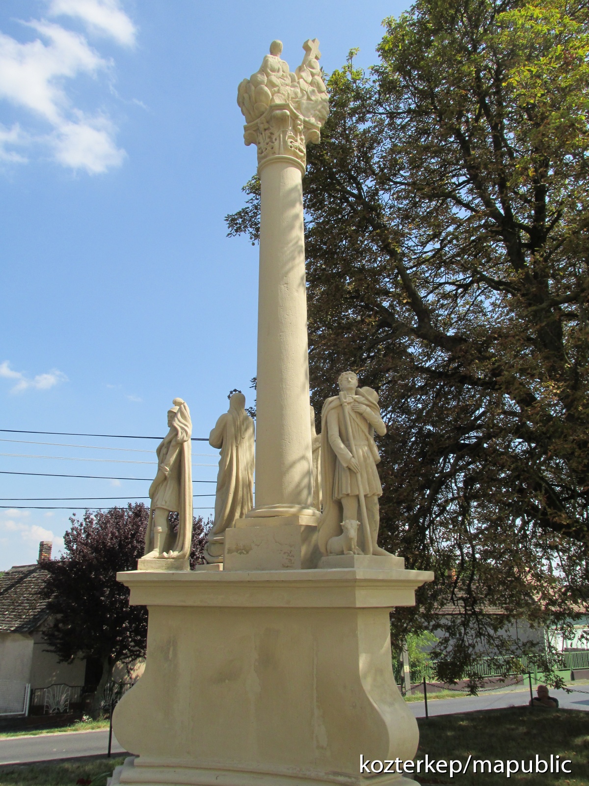 Sármellék Szentháromság szobrát a katolikus templom előtt találjuk. A nem kis méretű barokk alkotáson az oszlop körül Szűz Mária, Szent Sebestyén, Szent Vendel és Szent Flórián szobrait láthatjuk.
