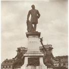 Felirat: 'BAROSS'. A felvételek több időpontban készültek, emiatt látszik, hogy a háttérben lévő fa pusztulásnak indult. A pesti polgár szoborkultúráját pedig az utólagos kiegészítő kellékek jelzik.