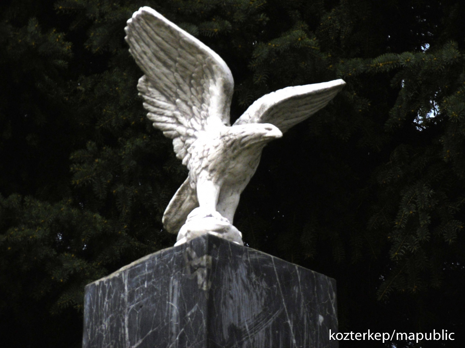Az emlékmű tetején egy turul kőszobra van. Ez alatt egy pajzs alakú bronz dombormű látható. Lejjebb vésett felirat aranyozott betűkkel: