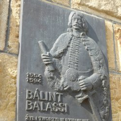 Az emléktábla bal felső részén magyarul is olvashatunk idézetet Balassi tollából.