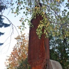 Sokáig kerestem a gyár területén, mert tudtam/tudták, hogy van de pontosan senki nem emlékezett, hogy merre. Elbújt a fák között, csak a véletlen műve volt, hogy megláttam. Ami vicces az egészben, hogy 2 éve a Vasmunkás https://www.kozterkep.hu/~/24741/Vasmunkas_Miskolc.html fotózásakor nem láttam, valamint pont a portásfülkével szemben lévő dombon van. A lényeg meglett és még megvan.