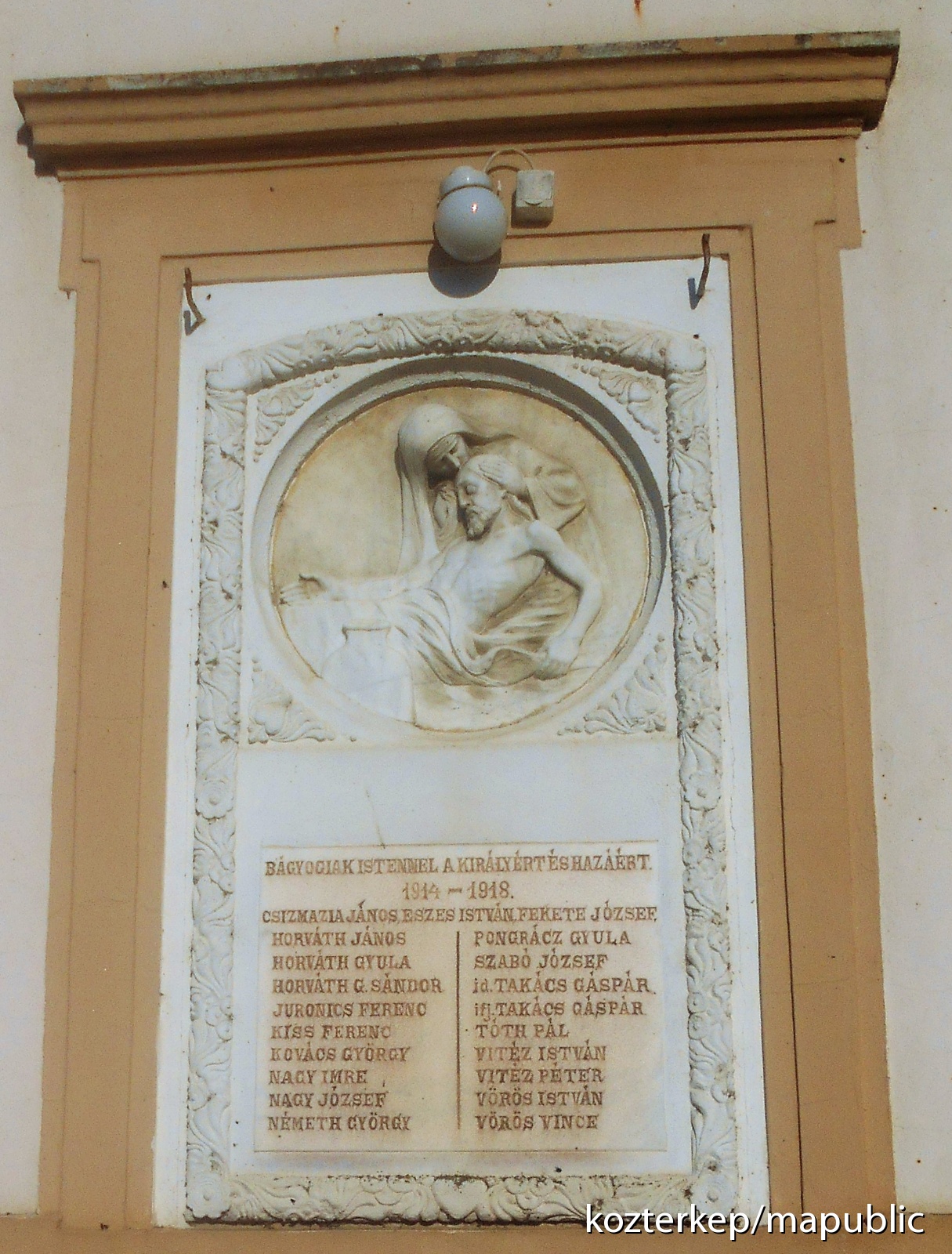 A különösen szép, véleményem szerint márványból készült bágyogi emlékművön, -sajnos az alkotó kilétét eddig nem sikerült azonosítani- olvasható Horváth János, Vitéz Péter orosz fogságban halt meg, Vörös Vince az olasz fronton, Vörös István pedig Galíciában halt hősi halált.