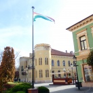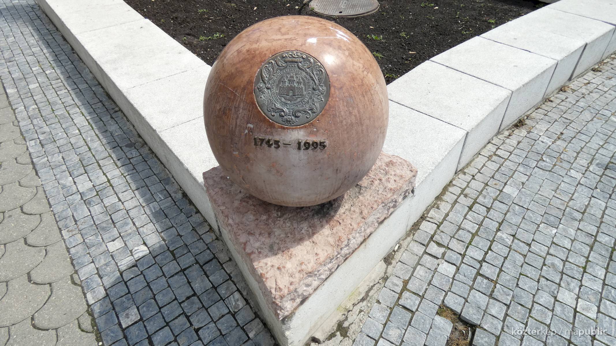 Révkomárom sétálóutcájában a tiszti kaszinó előtt már régebben is volt egy kis zöldterület a járda közepén (természetesen). Most a sarkokra mészkő gömböket állítottak és az egyik kertecskébe egy talapzaton egy míves zászlórudat. A zászlórúd tetején Révkomárom címere látható.