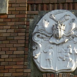 "A település központjában, a templom szomszédságában található, a Községháza épülete, mely stílusában is a templomot követi." A Községháza tehát neoromán stílusban épült - lehetne akár műemléki védelem alatt álló építmény is. Jelenleg: 10/2017 Hrsz:1317 számon nyilvántartott helyi védettségű egyedi érték. A címer elég régóta rajta lehet - adatot nem találtam.
