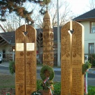 A kopjafa mellett jobb és bal oldalt álló virággal és szívvel díszített oszlopokon versek és idézetek olvashatóak. Mint Maurer Teodóra szántódi tanító "Idegen földben” című verse, vagy Vörösmarty Mihály Szózatának legszebb sorai. Az emlékművet Huszár László balatonendrédi népi fafaragó mester készítette.