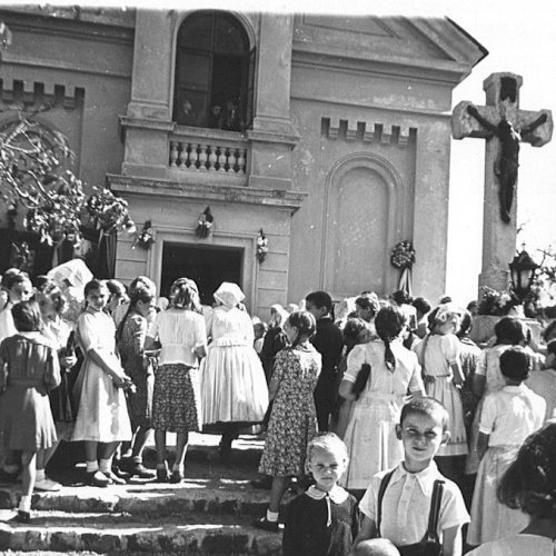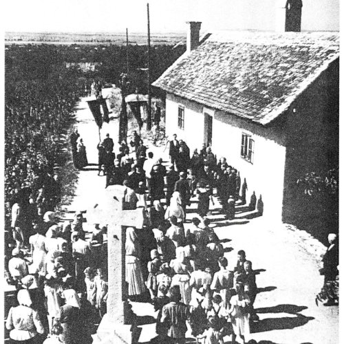 A kőkereszt felirata: "AHONNAN A HALÁL SZÁRMAZOTT, ONNAN TÁMADJON FEL AZ ÉLET" ÉS ÁRADJON SZÉT AZ ÖREGHEGY ÁLDOZATOS NÉPÉNEK LELKÉBEN. 1955.