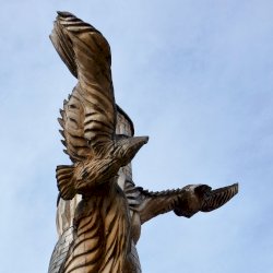 Varga Norbert láncfűrészes fafaragó fantáziája kifogyhatatlan. A Velence korzón kialakított szoborsziget - ahol a mesefa is látható - vonzza a tekinteteket és a gyermekek kedvence is.