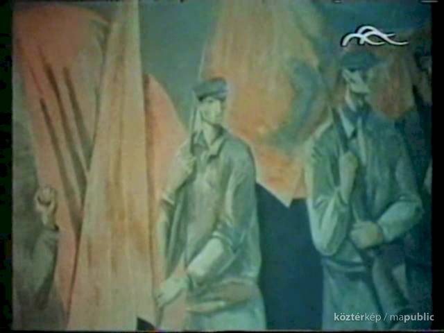 "Az 1964-ben meghirdetett pályázaton Kurucz D. István és Szentiványi Lajos [1] [2] terveit fogadták el. A megbízók részletes forgatókönyvet adtak át a művészeknek, mely a Tanácsköztársaság és a két világháború között illegálisan működő kommunista párt helyi vonatkozású eseményeit ismertette. Bár senki sem kívánt kimondottan illusztratív ábrázolást, ez a körülmény bizonyos mértékig megkötötte a festők munkáját. Ám ennek a megkötésnek a képek kárát nem látták. Ellenkezőleg, a kötelmek több esetben sűrítésre, az eszme tömör kifejezésére késztették a festőket. A festők egyöntetű elve volt, hogy a rendelkezésre álló teljes felületet kihasználják.