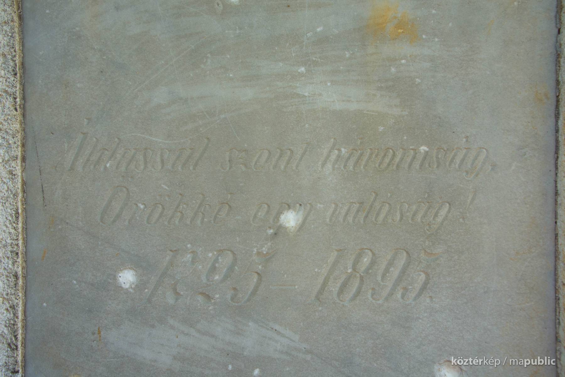 Felirata: „Áldassál szent háromság, / Örökké egy valóság 1725-1895."