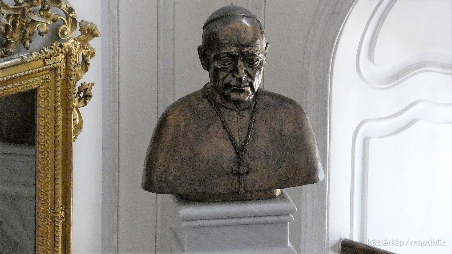 A szobor a Veszprémi Érseki Palotában látható, elhelyezésre a Ferenc József dombormű által ismert lépcsőházban. A bronz szobor márvány talapzaton áll. Veszprém bőséggel kínál művészeti rendezvényeket. A Mindszenty szobor a huszonharmadik alkalommal megrendezett Gizella-napok keretében áldotta meg Dr. Márfi Gyula, a Veszprémi Főegyházmegye érseke.
