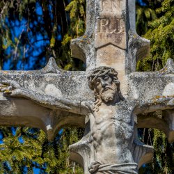 A kőkereszt a templom melletti parkban látható, amelyet 1901-ben Katarina Kuzmich állíttatott az ekkor még működő soproni Hild-műhellyel. A „Hild Sopron”-már nehezen, de olvasható a talapzat hátoldalán.